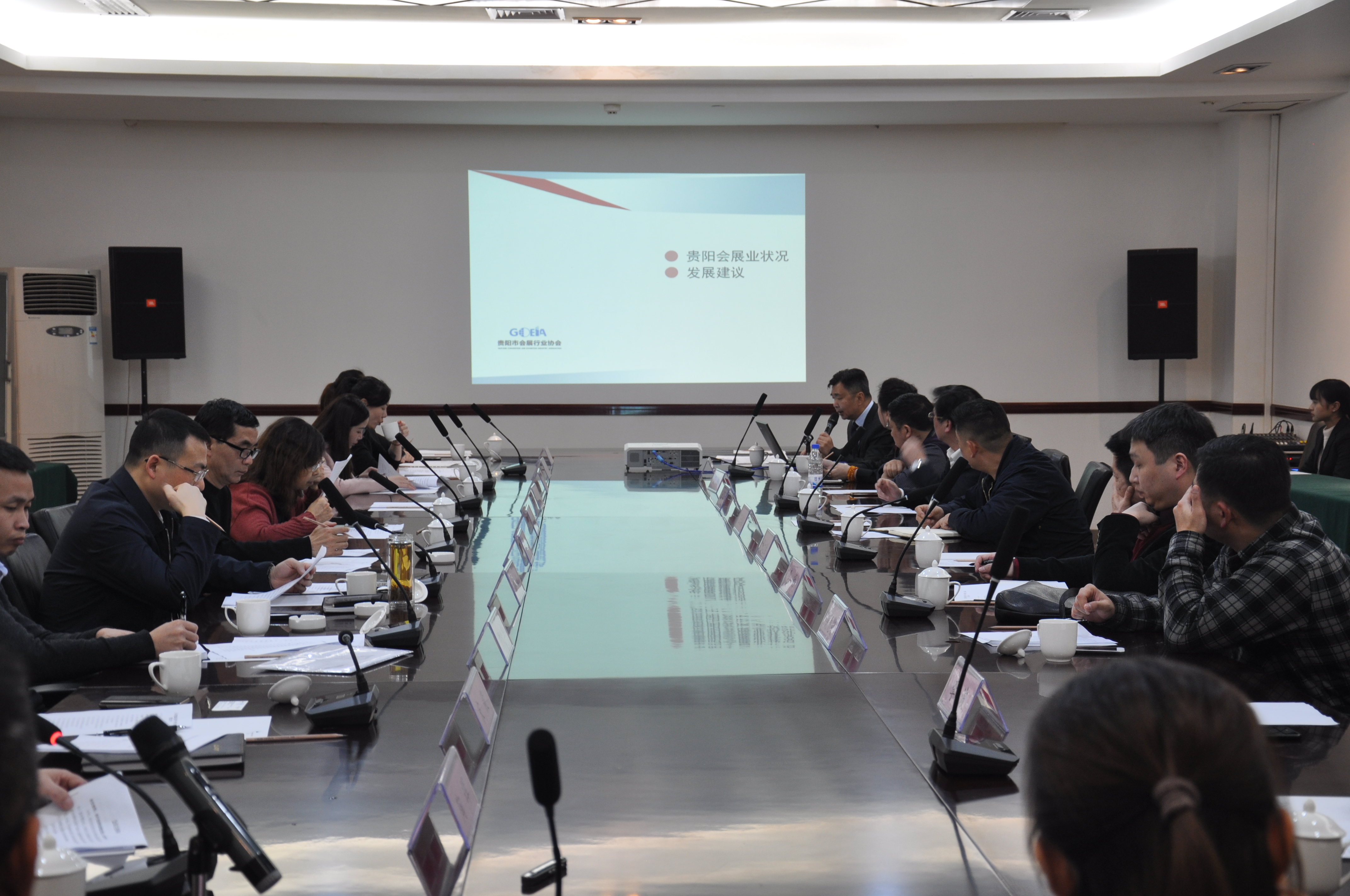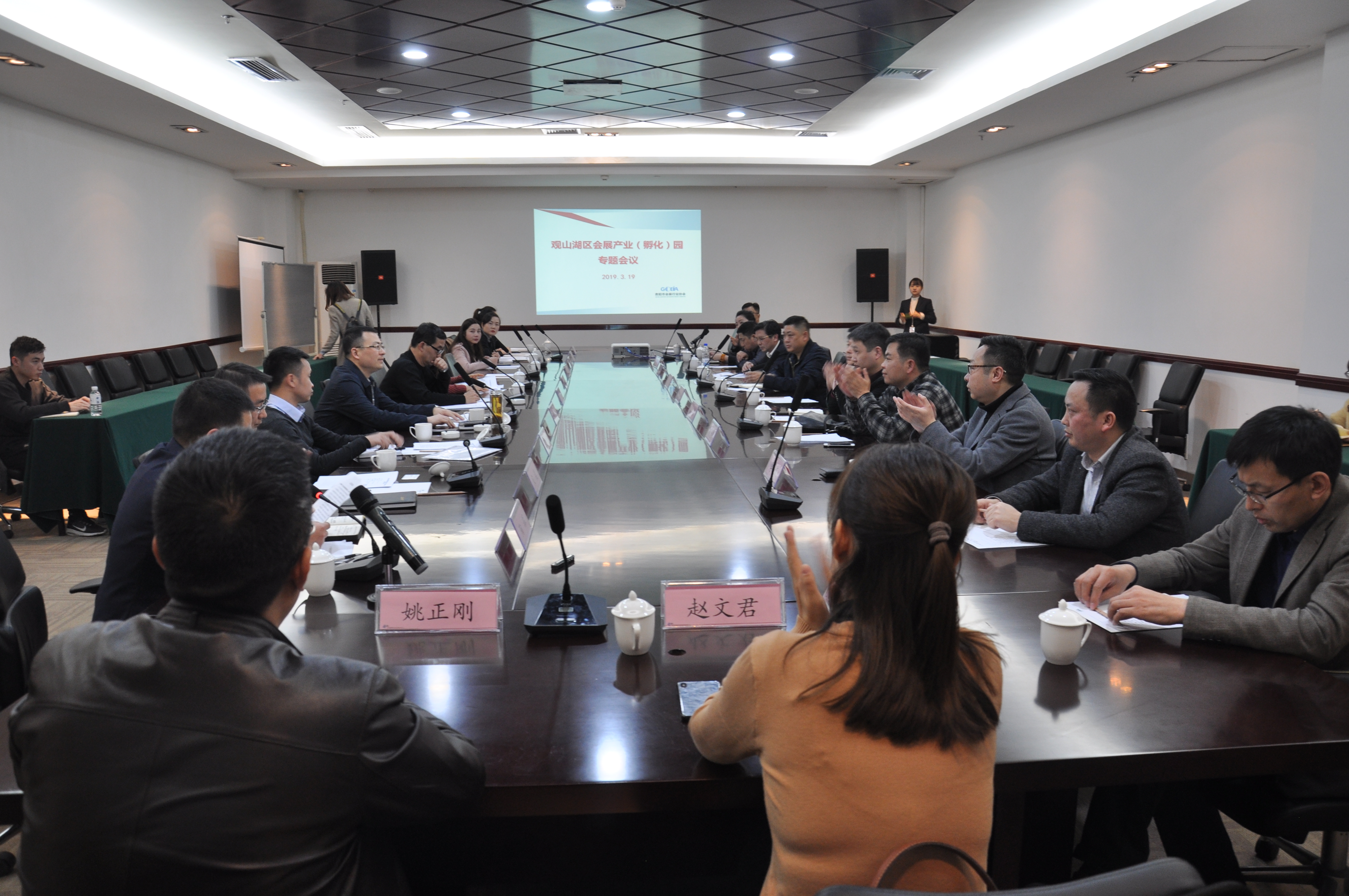 为充分发挥贵州金融会展城资源优势,推动会展产业加快聚集高质量发展,增强会展经济发展新动能,2019年3月19日下午,现代服务产业试验区会同贵阳国际会议展览中心有限公司在贵阳国际会议展览中心2楼1203会议室组织召开会议,专题研究加快观山湖区会展产业发展有关事宜。省贸促会(省博览事务局)副会长(副局长)吴冰、省商务厅外贸处调研员刘晓雁、观山湖区区委常委、区政府党组成员罗毅、市会展办会展处处长刘飞出席,贵阳国际会议展览中心、贵阳国际生态会议中心、贵州国际酒类博览会会展公司、贵阳尚格会展服务公司等14家会展公司相关负责人参加会议。