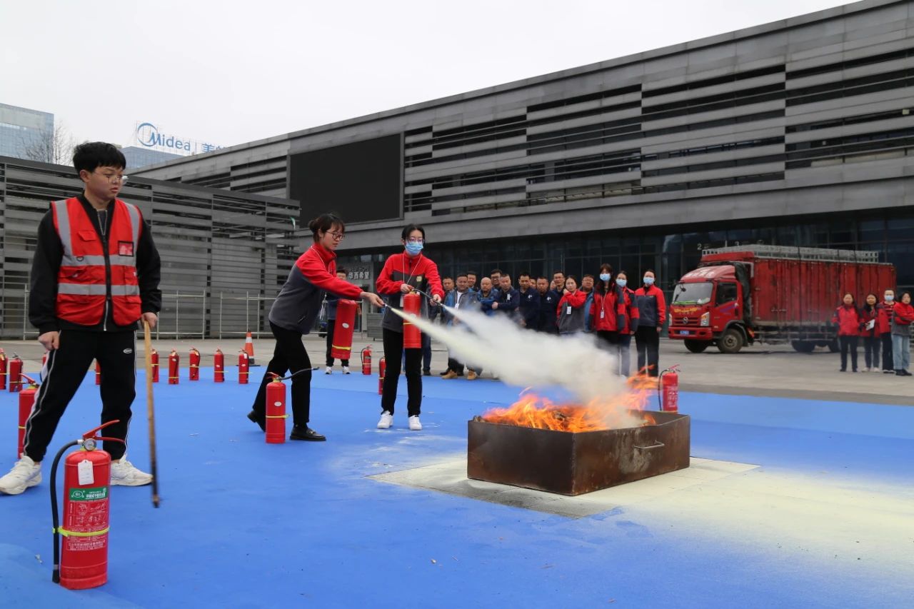 此外,北广场上还进行了灭火器使用实操,讲解员详细讲解了干粉与水基灭火器的使用方法,并邀请全员进行了灭火器实操,参训人员亲身体验了规范的“灭火动作”,进一步提升了消防安全意识及自防自救的能力。在大家的紧密配合下,达到演练目的。