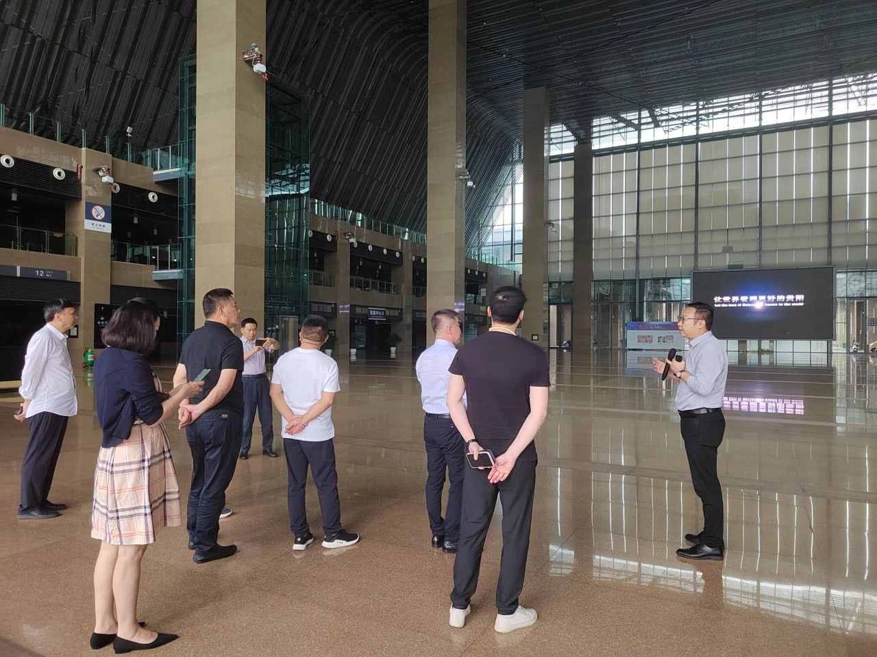 党科一行参观会展中心的基础布局,了解场馆分布及内部结构。